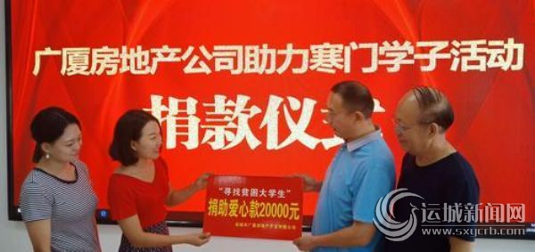 本網(wǎng)訊(記者 李婉玉 馮楊婕)8月17日上午,愛心企業(yè)運(yùn)城廣廈房地產(chǎn)有限公司再次回報(bào)社會(huì),為晨報(bào)發(fā)起的“尋找貧困大學(xué)生”愛心助學(xué)行動(dòng)捐款兩萬元。
