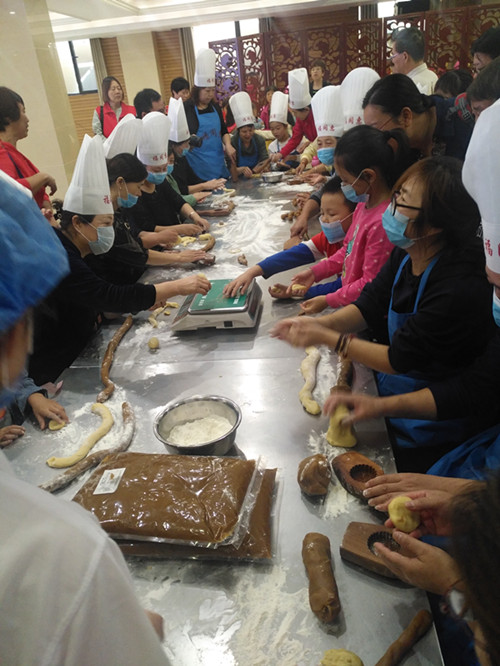 業(yè)主們紛紛加入到制作月餅的隊(duì)伍中