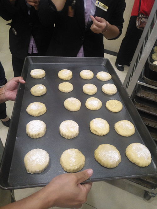 福同惠師傅準(zhǔn)備給月餅?zāi)ǖ耙?/span>
