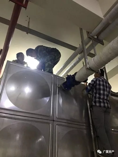 2018年10月24日,為了保證小區(qū)二次供水飲用標準,朱振海等人對二次供水水箱進行了全面清洗,以確保小區(qū)業(yè)主健康生活用水。