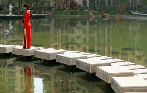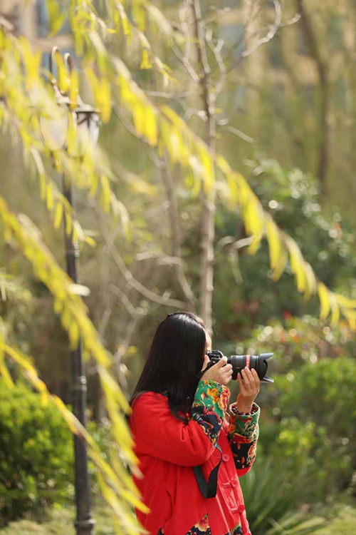垂柳風(fēng)揺閑碧水,紅樓綠掩醉亭臺(tái)。