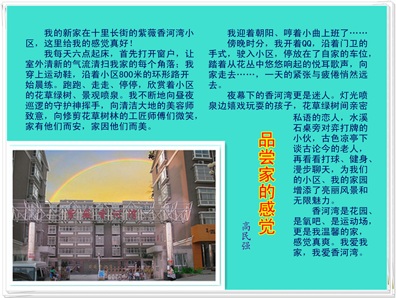 這里是情感的天空,是公司專門為員工、小區(qū)業(yè)主們及熟悉廣廈公司的朋友們開辟的一塊“文卉園”。大家可以在這里發(fā)表自己的習(xí)作、談?wù)勛约旱慕?jīng)歷、抒發(fā)自己的情感軼事。